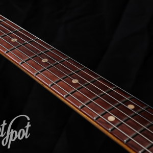 A former neck pickup cavity modification has been professionally restored to original specs and tastefully touched up in nitro.
