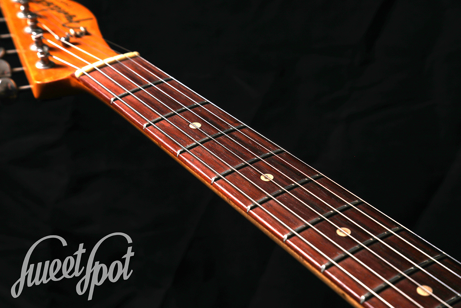 Original neck pickup reinstalled, currently fitted with a repro green guard.