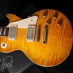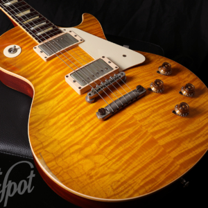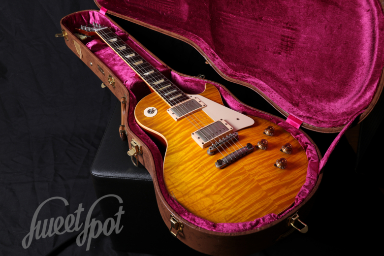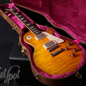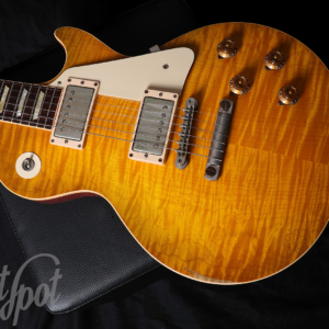 Gibson Custom Shop CC#2 “Goldie” 1959 Les Paul – Double Gold Aged. Stunning top with a beautiful gold finish and authentic aging. Sounds as good as it looks – a true Custom Shop collector’s piece.