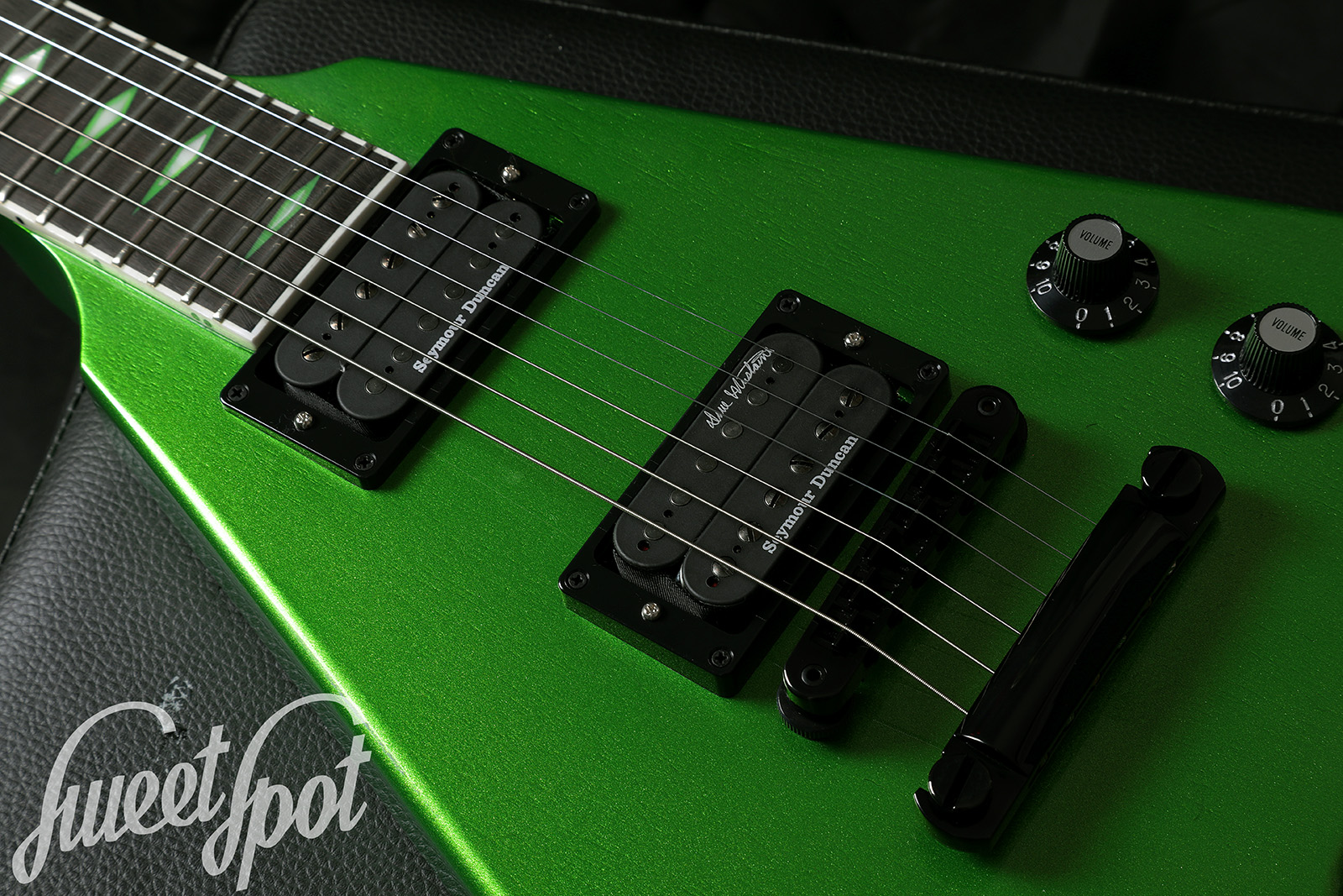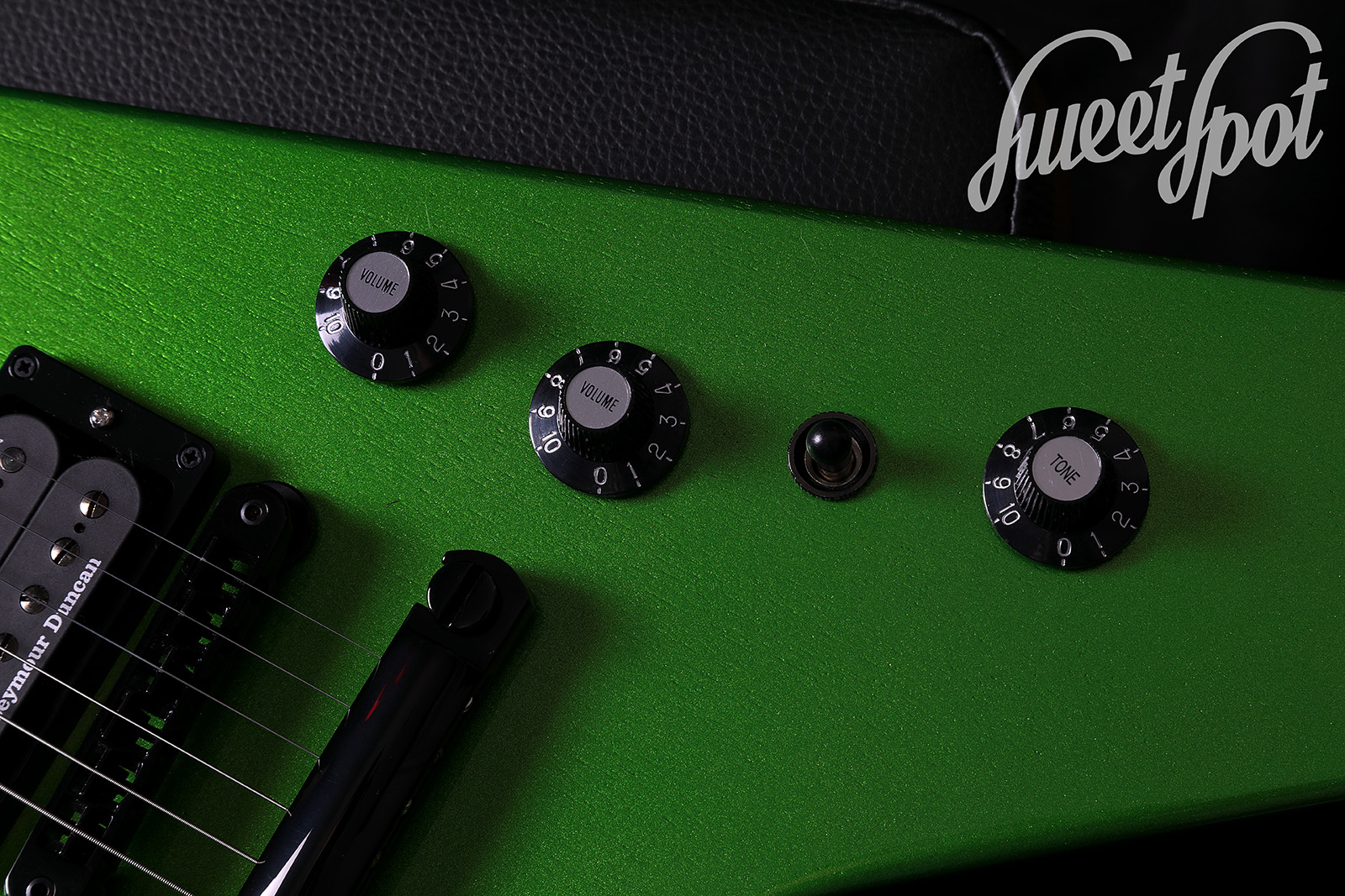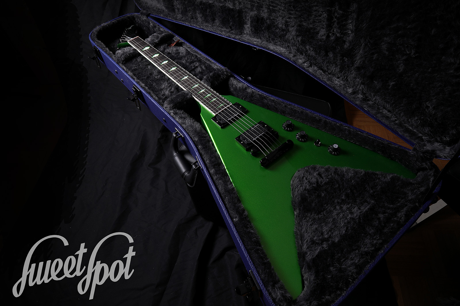 For sale is a 2023 Gibson Dave Mustaine Flying V EXP in EXP Green finish – a modern metal V with top playability, aggressive looks and plenty of output. It is the rarest of the colours and already completely sold out.
