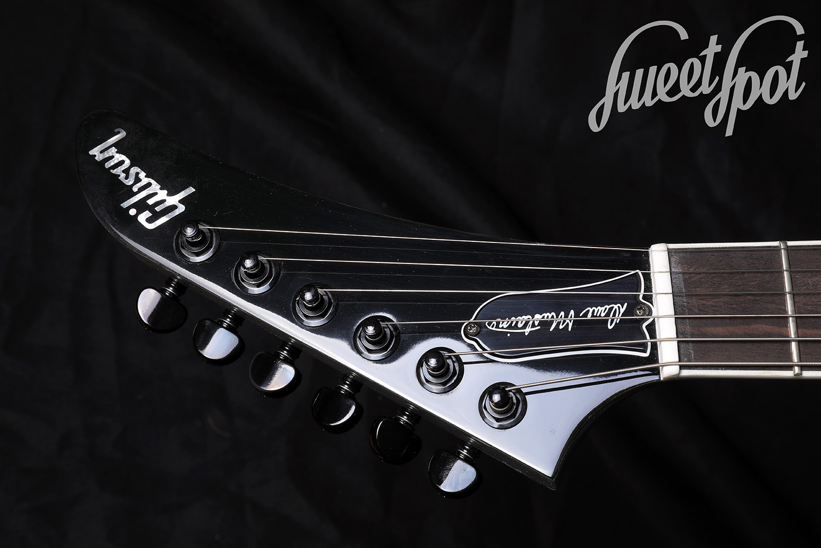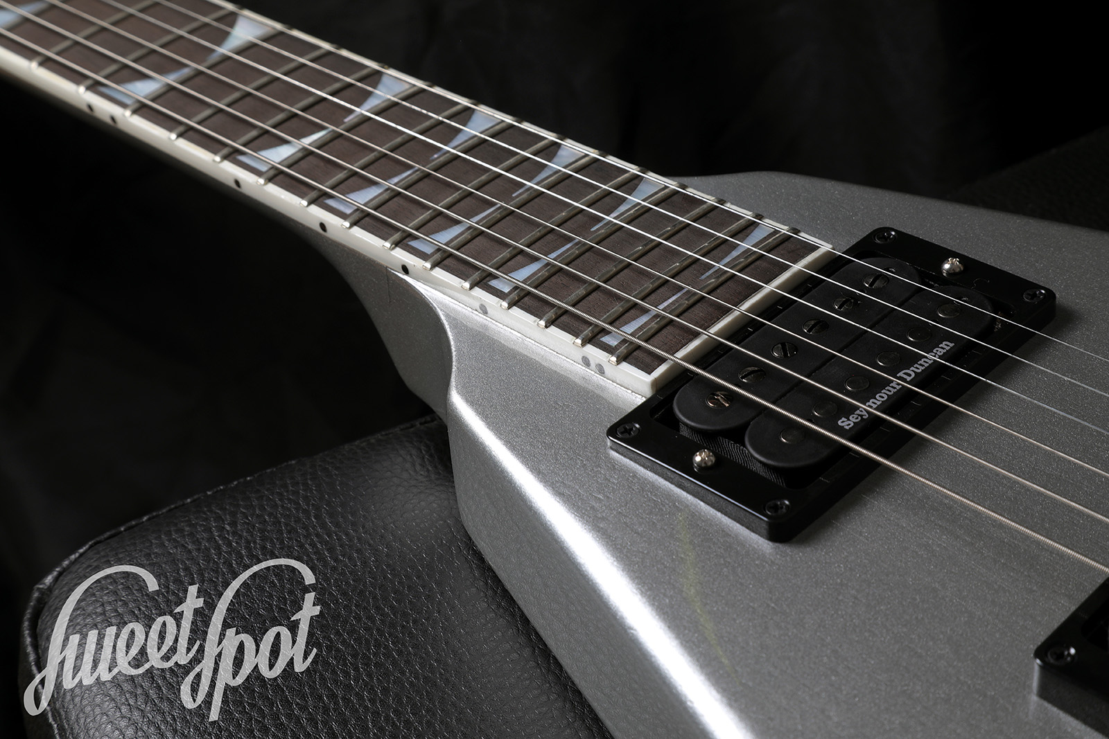 For sale is a 2023 Gibson Dave Mustaine Flying V EXP in an elegant EXP Silver finish – an uncompromising metal V that immediately impresses both visually and sonically. The guitar delivers massive output, tight bass and clear string separation for precise riffing, while leads sing beautifully yet remain defined. Add to that the typical Flying V ergonomics with modern playability – perfect for high gain, drop tunings and the stage.