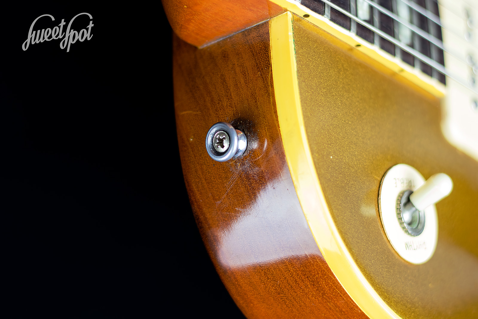 Besonderheit: kein Factory „Les Paul“-Script auf der Decke, aber dafür ein Factory Vintage „Les Paul“ engraved Trussrod Cover.
