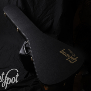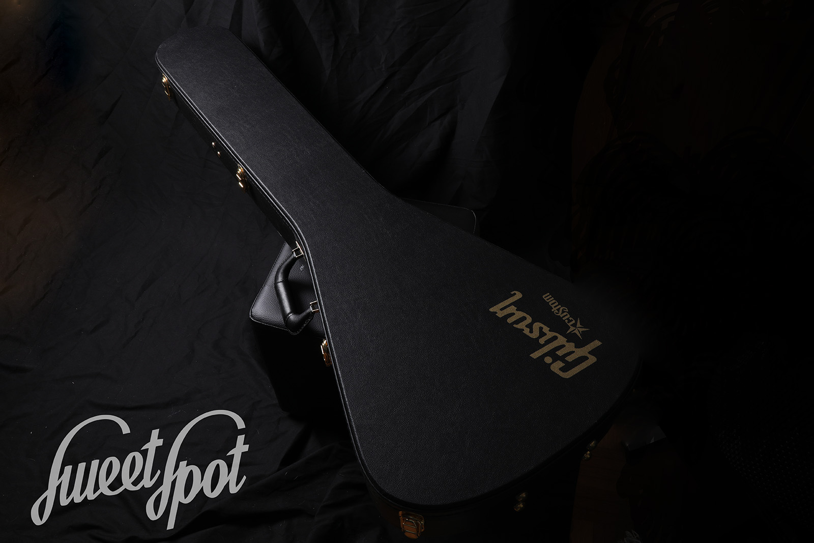Zum Verkauf steht eine Gibson Custom Shop Kirk Hammett Signature Flying V (Aged) aus 2012 im Finish Aged Ebony – ungespielt (Sammlerzustand).