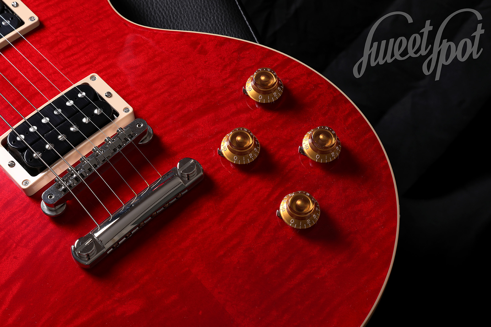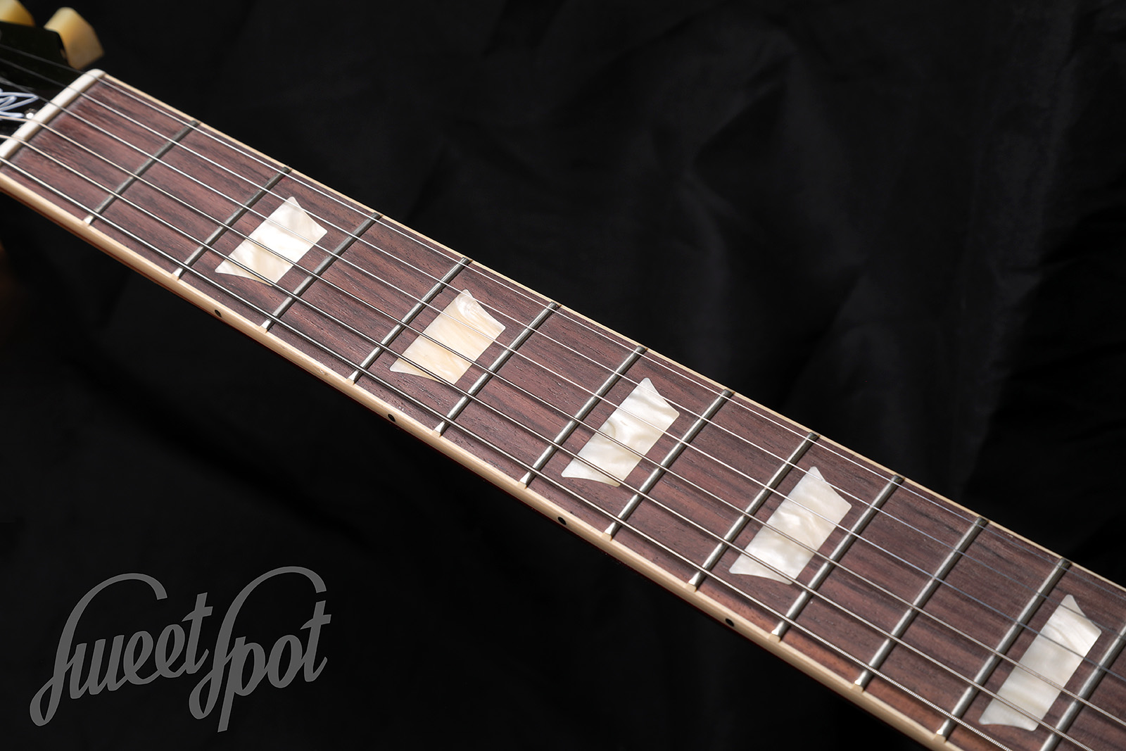 Klanglich liefert sie den typischen Les-Paul-Standard-Punch: fetter, sustainreicher Ton mit klarer Ansprache – dank Gibson Custom BurstBucker Alnico II Pickups und handverdrahteter Elektronik mit Orange-Drop-Kondensatoren.